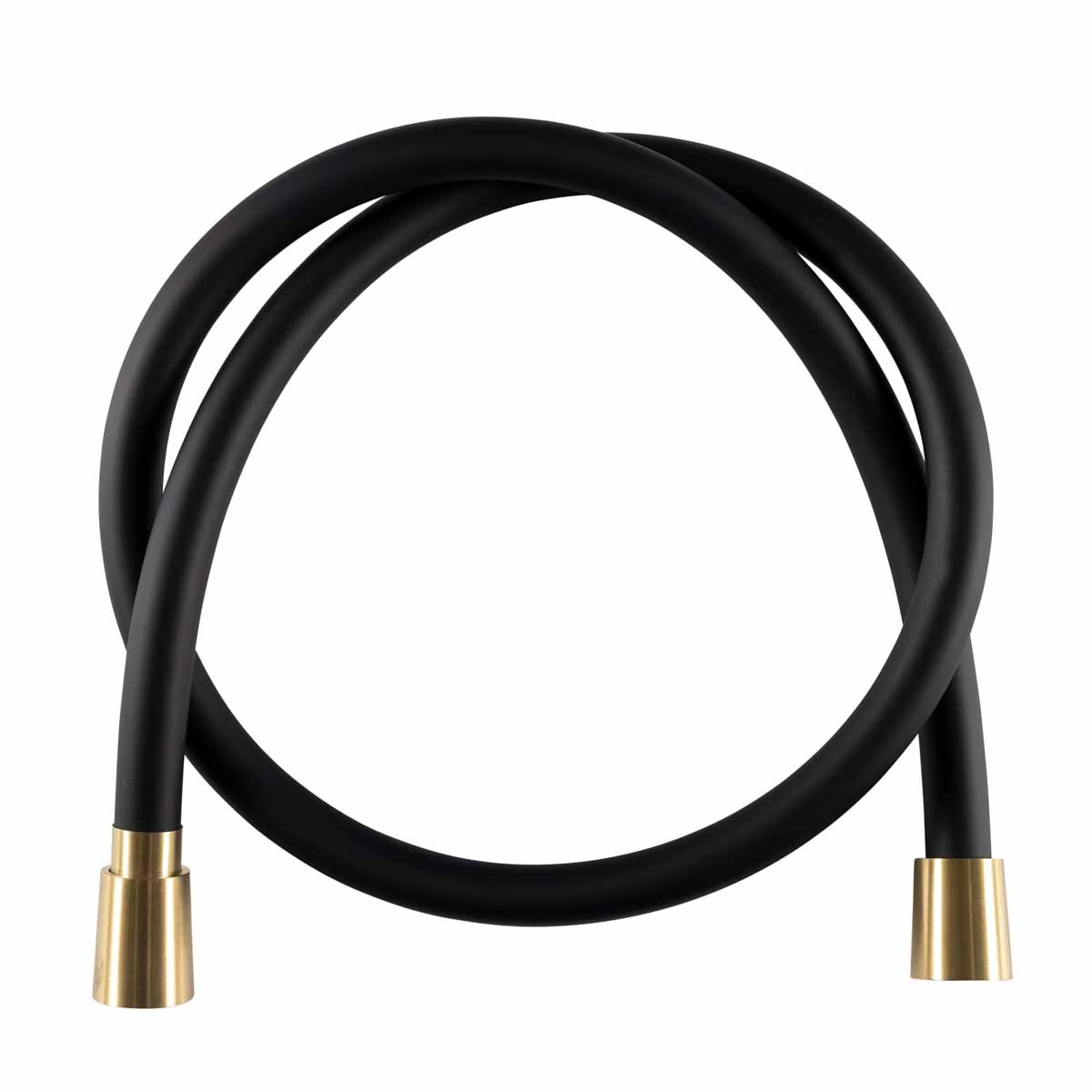 Doucheslang van flexibel mat zwart siliconen 150cm pvd licht goud aansluiting.