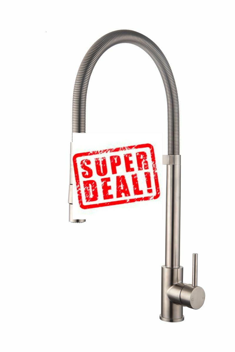 Mooie strakke design keukenkraan van volledig RVS . Deze robuuste keukenkraan staat geweldig op het keukenblad of op het kookeiland .